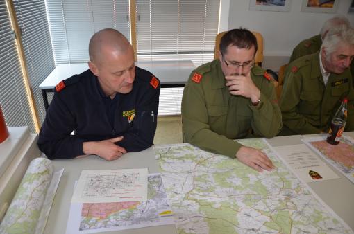 Im 2. Teil wurde eine Theorieschulung durch Vizeleutnant Martin Hartner und Vizeleutnant Dietmar Kargl durchgeführt. Der Tüpl Allentsteig ist in verschiedene Sicherheitszonen aufgeteilt, welche von den Einsatzkräften der Rettung und Feuerwehr nur bedingt befahren werden dürfen. Es gibt hier verschiedene Lotsenpunkte, wo sich die Einsatzkräfte sammeln und dann gemeinsam mit dem Bundesheer in das jeweilige Einsatzgebiet eingefahren wird. In der Sicherheitszone A (Innenbereich Tüpl) darf nur in Ausnahmefällen, bei Rettung von Menschenleben, eingefahren werden. Die ausgehende Gefahr durch Blindgänger ist hier bei Bränden viel zu hoch, hier kann nur ein natürliches Abbrennen erfolgen. Alle Feuerwehren haben Pläne und Unterlagen mit Kontaktdaten für die weitere Verwendung erhalten.