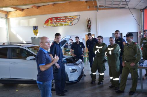Die Feuerwehren traten unterabschnittsweise zur Ausbildung bzw. Inspektion an. Dieses Jahr stand der Ausbildungsteil im Zeichen der E-Autos. So wurde im Schulungsraum ein Vortrag über E-Autos und deren speziellen Eigenschaften im Feuerwehreinsatz durch Ausbilder Andreas Schrenk gehalten. Der Praxisteil wurde durch die Firma Hasslauer aus Schlag geschult. So konnten ein E-Auto und ein Hybrid-Fahrzeug angesehen begutachtet werden. Durch die Firma Haslauer wurde die Rettungskarteien sowie die verschiedenen Komponenten in den Autos professionell erklärt.