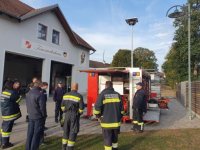 Bei einer weiteren Station wurden Schwimmpumpen in der Praxis vorgeführt. Mit den Schwimmpumpen kann mit geringer Mannschaftsstärke (bereits mit 2 Mann) rasch eine Wasserversorgung hergestellt werden, das auch bei erschwertem Zugang zur Wasserentnahmestelle (Bsp. Böschungen, Bäume etc..)