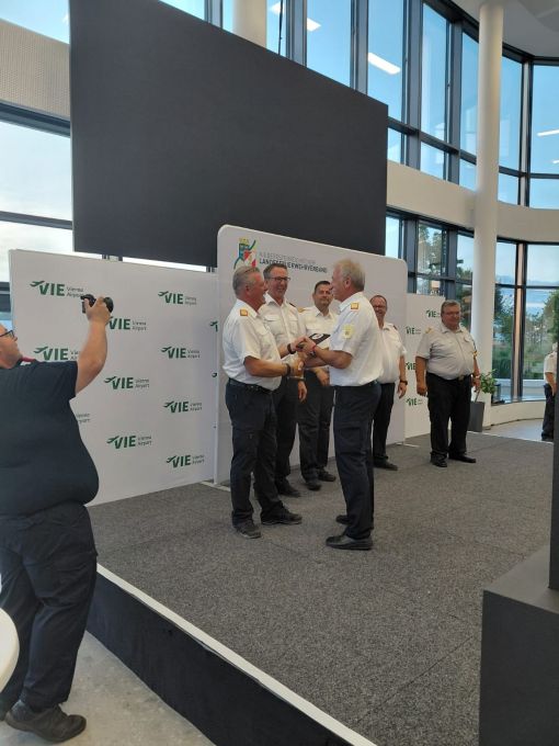 Da unser Abschnittskommandant BR Sigi Ganser im Jahr 2026 das 65. Lebensjahr vollendet war der 73. Landesfeuerwehrleistungsbewerb in Schwechat sein letzter offizieller Bewerb. Für seine fast 30 jährige Tätigkeit als Bewerter bei Abschnitts-, Bezirks- und Landesleistungsbewerben wurde BR Ganser beim Bewerterabend am Gelände des Flughafens Wien-Schwechat verabschiedet. Ihm wurde von Landesfeuerwehrkommandant LBD Dietmar Fahrafellner und Bewerbsleiter LFR Anton Weiss Dank und Anerkennung ausgesprochen und ein Erinnerungsgeschenk überreicht.