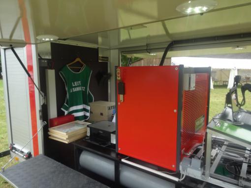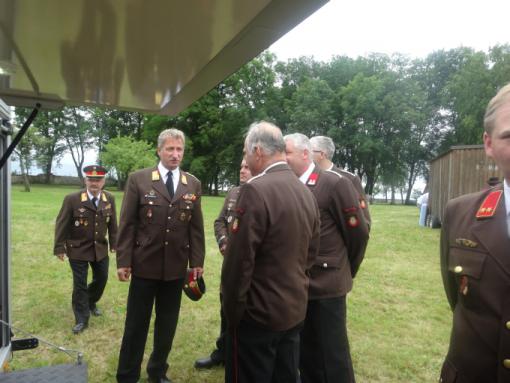 Bei der heiligen Feldmesse unter freien Himmel konnten zahlreiche Besucher und viele Feuerwehrkameraden aus dem Feuerwehrabschnitt Allentsteig begrüßt werden. Angekauft wurde der Anhänger gemeinsam von den Gemeinden Allentsteig, Echsenbach, Göpfritz/Wild, Pölla und Schwarzenau. Finanzielle Unterstützung haben auch die Sparkasse Waldviertel und Raiffeisenbank Waidhofen/Thaya geleistet. „Mit diesem hoch modernen Einsatzgerät ist es uns möglich im Einsatzfall schnellstens die Atemschutzflaschen wieder zu füllen“, so Abschnittsfeuerwehrkommandant BR Ganser in seiner Ansprache. Ein herzliches Dankeschön gilt den Gemeinden und Unterstützern sowie der Freiwilligen Feuerwehr Göpfritz/Wild, wo der Atemluftanhänger derzeit stationiert ist. Unser lokaler Pressefotograf der NÖN Zwettl, Herr Friedrich Schiller, erhielt für seine langjährigen Verdienste die „Florianiplakette“ des Niederösterreichischen Landesfeuerwehrverband im Rahmen der Feierlichkeiten. Im Anschluss konnten sich viele Besucher ein eigenes Bild vom neuen Einsatzgerät machen.